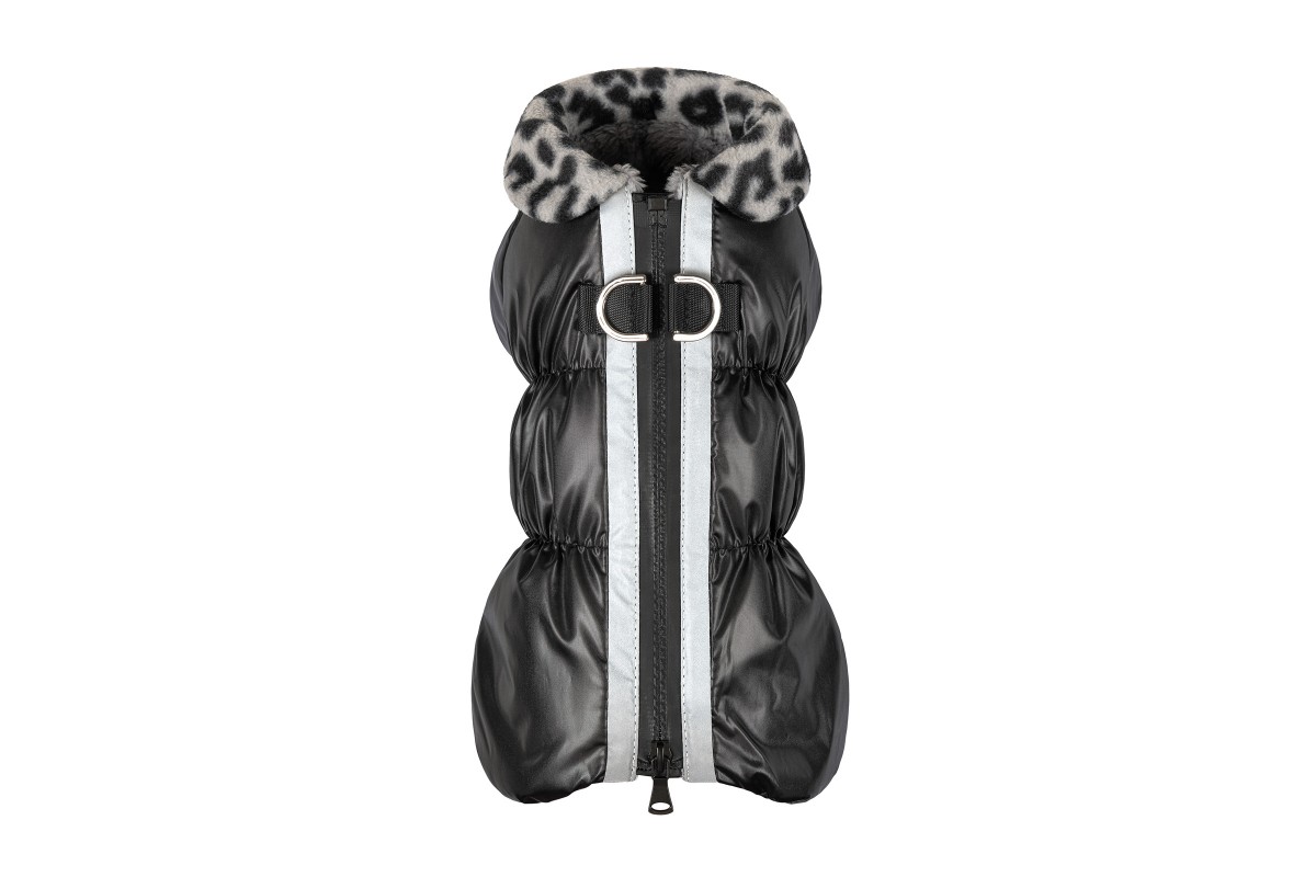 Модель для песиків, які полюбляють довгі прогулянки у будь-яку погоду: сніг, дощ, вітер. Зимовий комбінезон не пропускає вологу, бо зшитий із водовідбивної плащової тканини, він теплий та легкий завдяки якісному силіконовому утеплювачу та пухнастій підкладці. Резинки на поясі та лапках запобігають потраплянню холодного повітря під одяг. Високий пухнастий комір робить модель ще затишнішою та теплішою. Задля більшої безпеки на спинці нашиті світловідбивні стрічки. Півкільця дають можливість зручно кріпити повідець безпосередньо до комбінезону.