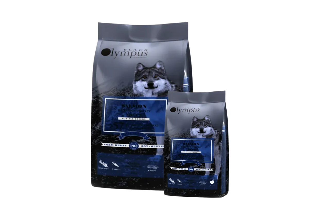 Корм Black Olympus низькозерновий для дорослих середніх порід, лосось та коричневий рис 12кг+2кг подарунок