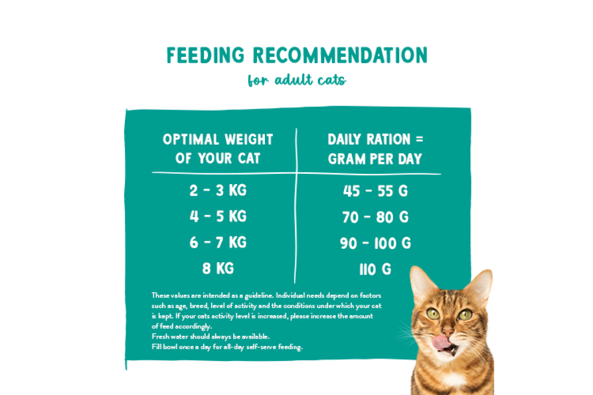 Достатньо наповнювати миску з їжею щоденним раціоном один раз на день. Ваша кішка потім їстиме сама за потреби.