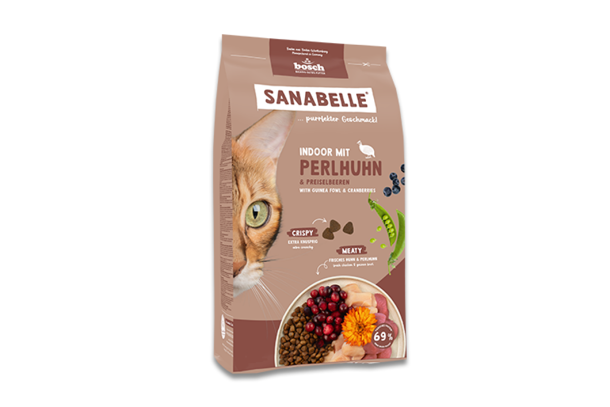 Sanabelle Indoor з цесаркою та журавлиною – ідеальний сухий корм для котів, які люблять проводити час у приміщенні. Спеціально розроблений для котів, які живуть у приміщенні з низькими енергетичними потребами, цей повноцінний корм пропонує збалансоване та повноцінне харчування з 12-місячного віку.