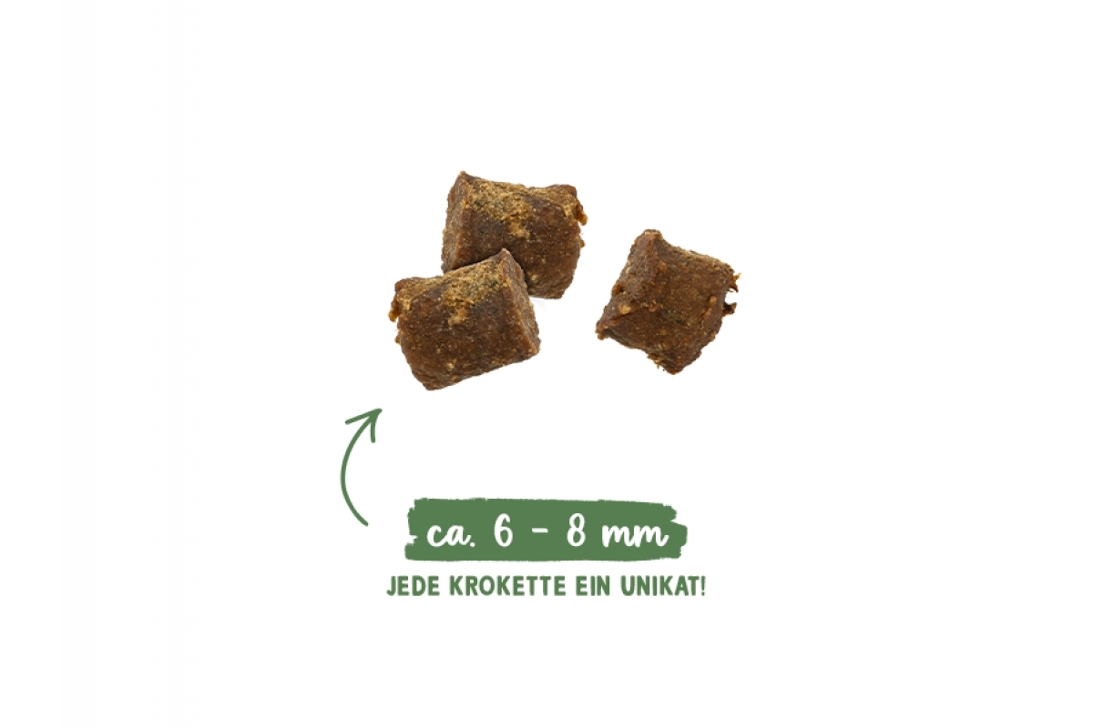Свіжа курка (32,5%), свіжа яловичина (30%), свинячий білок (сушений), свіжа печінка, солодкий картопля (сушений, 5%), гліцерин (рослинний), гідролізат білка, картопляний білок (2,5%), целюлоза, білок птиці (сушений), дикальційфосфат, лососеве масло (0,5%), тваринний жир, дріжджі (сушені, в тому числі 0,1% мананолігосахаридів, 0,06% бета-глюканів), картопляна клітковина, карбонат кальцію, юка (сушена), журавлина (сушена, 0,1%), чорниця (сушена, 0,1%), зелені мідії (сушені), петрушка (сушена), волокна капка, квітки чорнобривців (сушені).