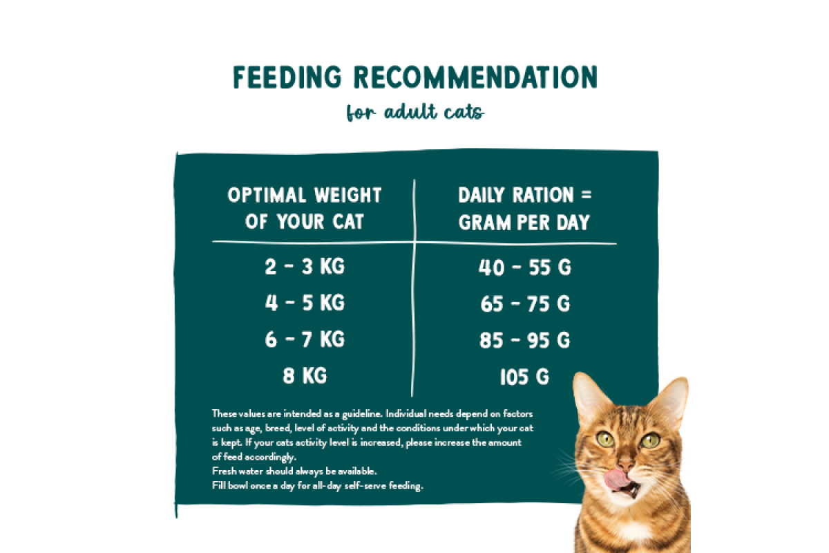 Достатньо наповнювати миску з їжею щоденним раціоном один раз на день. Ваша кішка потім їстиме сама за потреби.