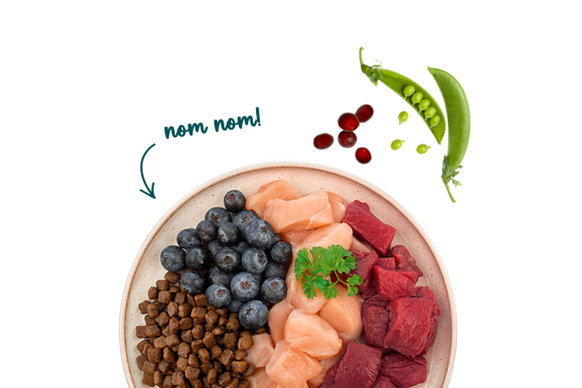 Свіже куряче м'ясо (20%), білок птиці (сушений), ячмінь, тваринний жир, кукурудза, свіжа качка (5%), кукурудзяний білок, сушений буряковий жом (видалений цукор), гідролізат білка, насіння льону, картопляний білок, печінкове борошно, карбонат кальцію, лососева олія (0,5%), горох (сушений, 0,4%), хлорид калію, брусниця (сушена, 0,1%), чорниця (сушена, 0,1%), сушена петрушка (0,1%), дріжджі (сушені, 0,1%), квіти чорнобривців (сушені, 0,05%).
