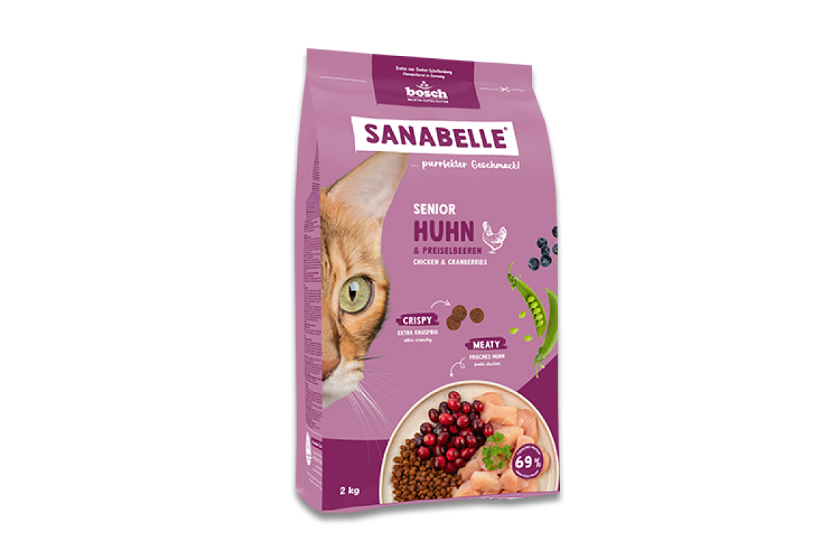 З віком коти змінюються, а їхні потреби змінюються – і саме для цього створений Sanabelle Senior. Цей високоякісний рецепт був розроблений з великою турботою для старших котів від 8 років і з любов'ю підтримує їх на шляху через «золоті роки».