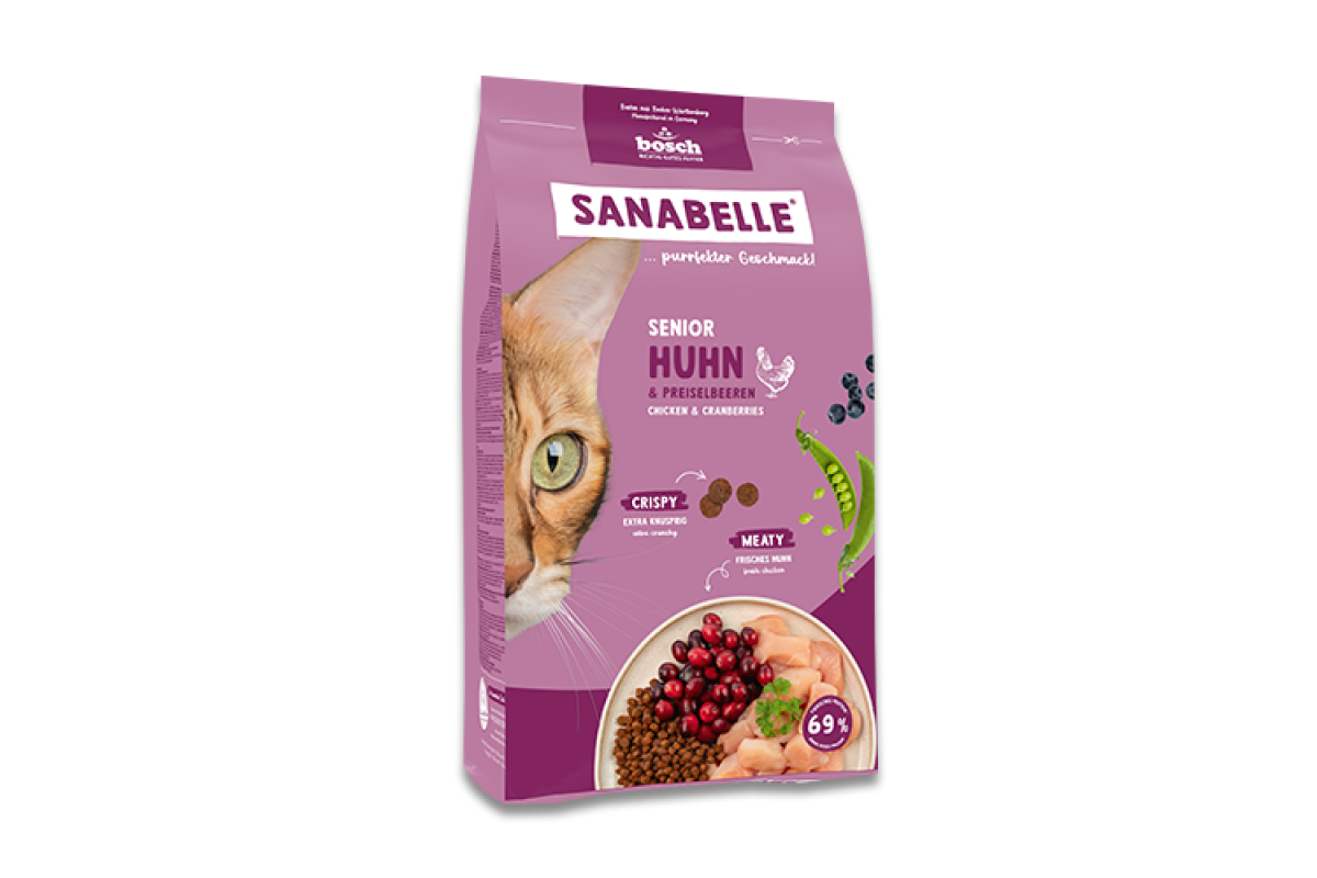 З віком коти змінюються, а їхні потреби змінюються – і саме для цього створений Sanabelle Senior. Цей високоякісний рецепт був розроблений з великою турботою для старших котів від 8 років і з любов'ю підтримує їх на шляху через «золоті роки».