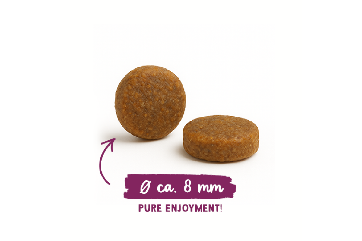 Збалансоване поєднання необхідних вітамінів, мікроелементів та цінних поживних речовин підтримує важливі функції організму, такі як опорно-рухова система, травлення, обмін речовин та підтримка блискучої шерсті – для загального благополуччя.