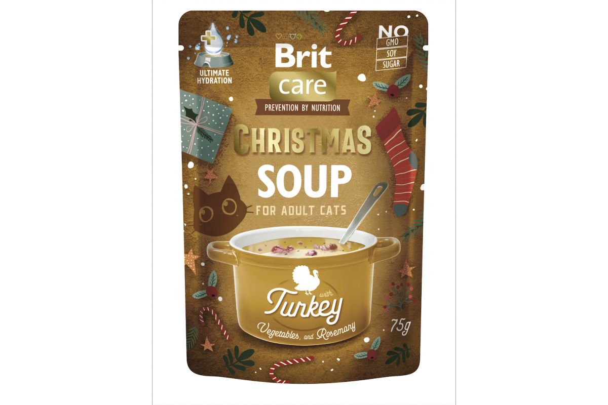 Різдво для нявчиків стало ще смачнішим! Адже з’явився вологий корм для котів Brit Care Christmas Turkey Soup – різдвяний суп з індичкою, овочами та розмарином.