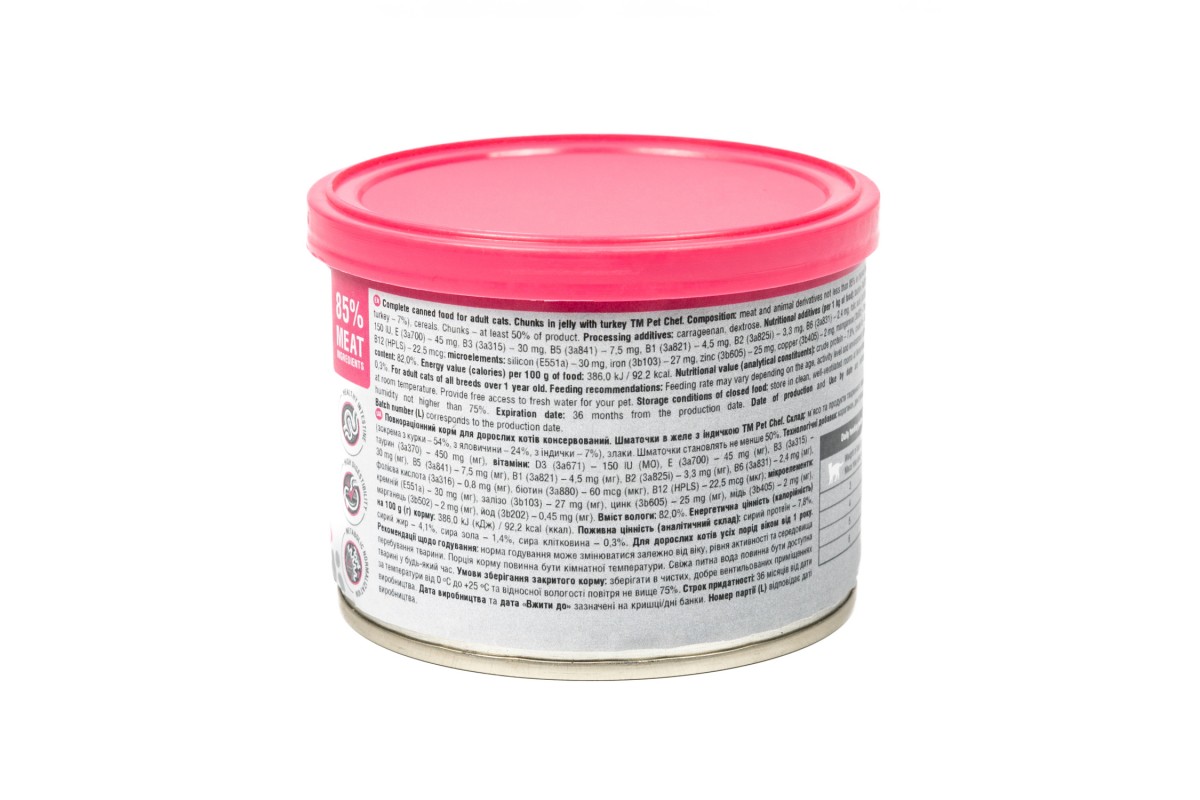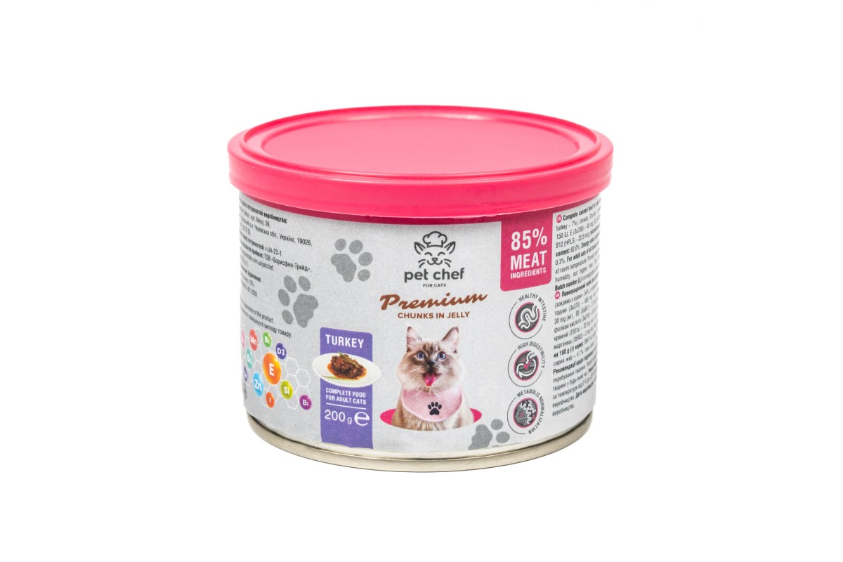Корм вологий Pet Chef, Шматочки в желе для дорослих котів, з індичкою, 200 г