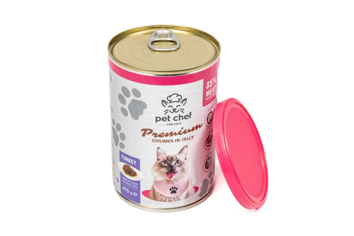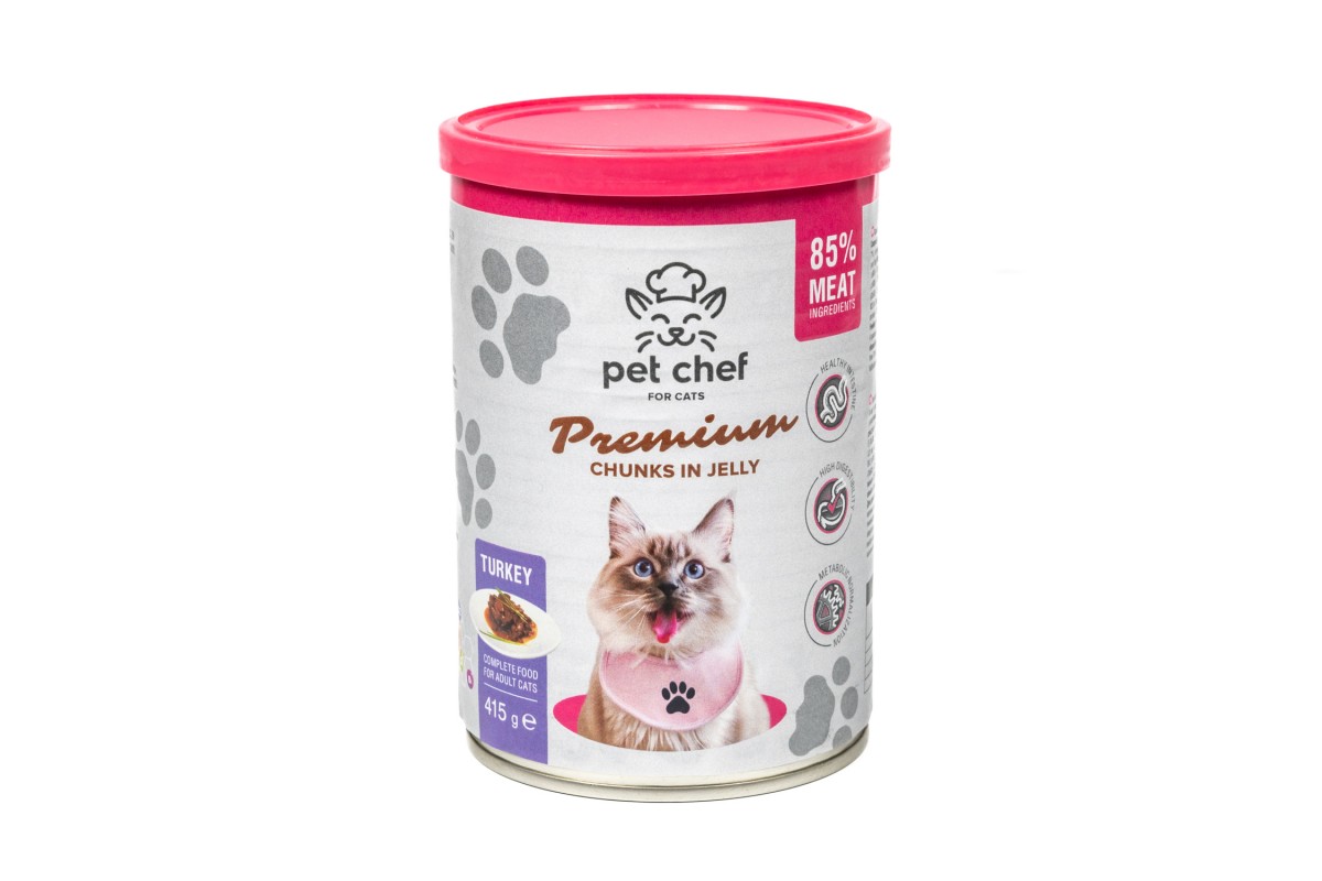 Корм вологий Pet Chef, Шматочки в желе для дорослих котів, з індичкою, 415 г