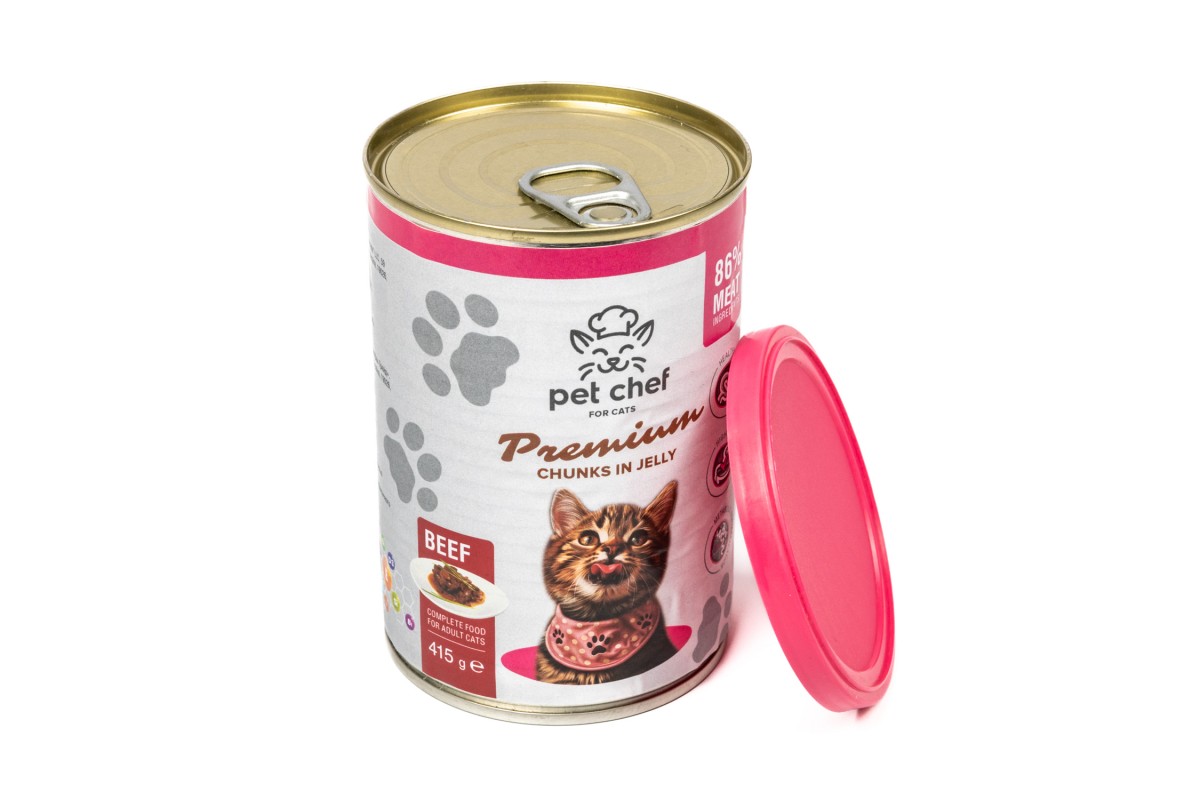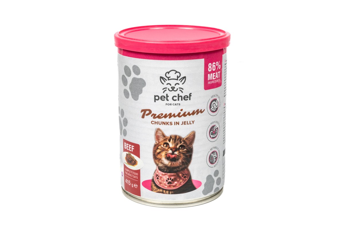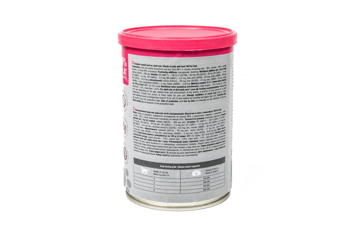 Корм вологий Pet Chef, Шматочки в желе для дорослих котів, з яловичиною, 415 г