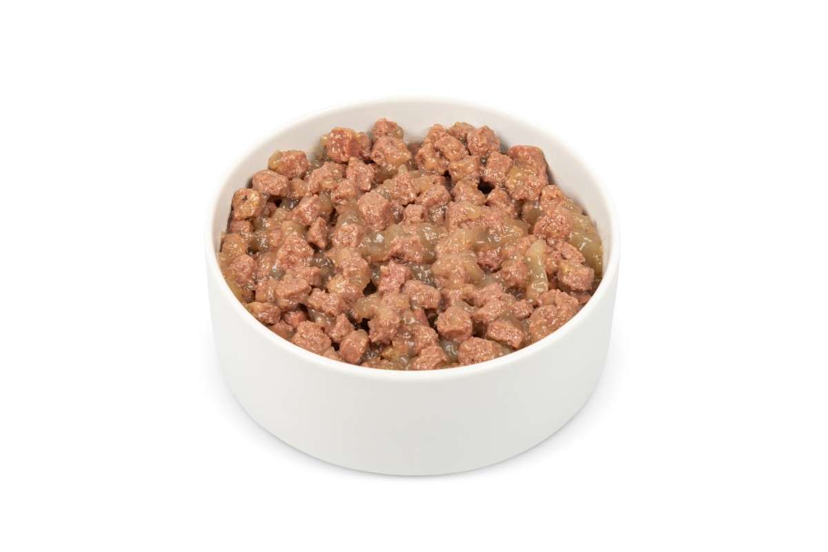 Склад: м'ясо та продукти тваринного походження не менше 86% у шматочках (зокрема з яловичини – 56%, з курки – 30%), злаки. Шматочки становлять не менше 50%.