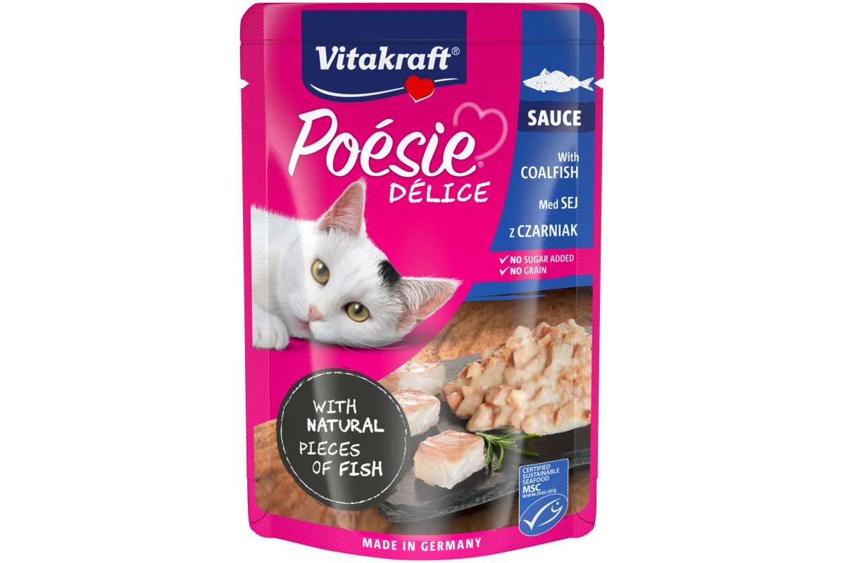Вологий корм Vitakraft Poesie Delice, для котів, з сайдою, шматочки в соусі , 85 г