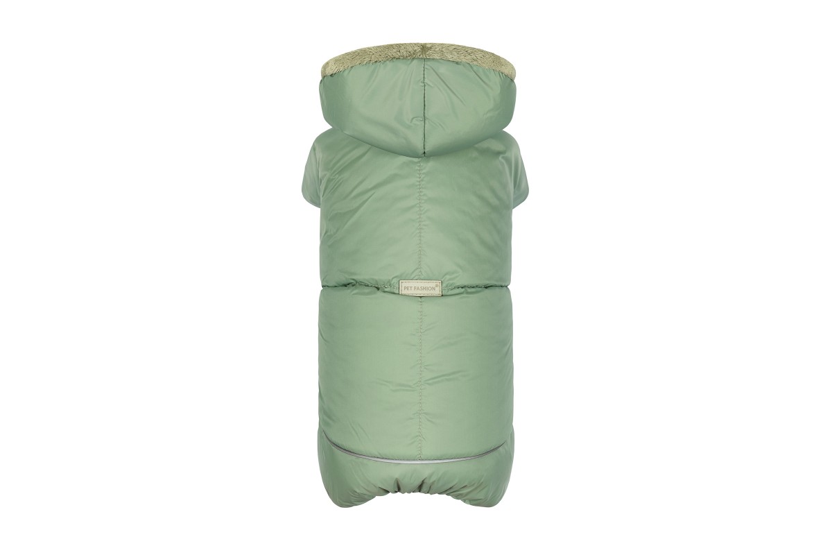Зручненький і теплий костюм-трансформер оливкового кольору підходить і хвостатим хлопчикам, і дівчаткам. Застібка-блискавка дозволяє одним рухом перетворювати зимовий костюм на демісезонну курточку зі світловідбивною смугою на подолі. Спинка курточки і каптур утеплені штучним хутром. Каптур за потреби можна зафіксувати на спині кнопкою. В основі каптура є отвір для повідця.