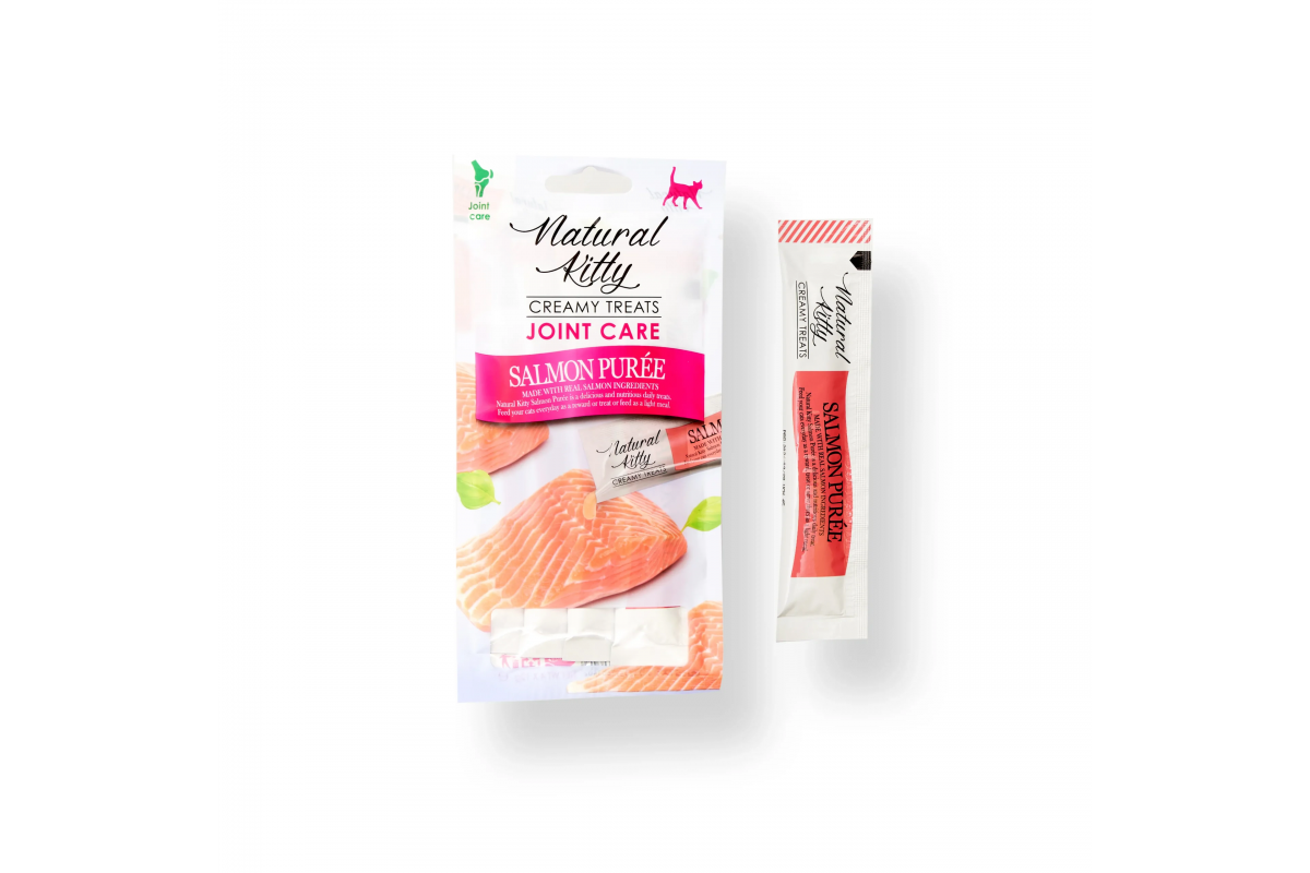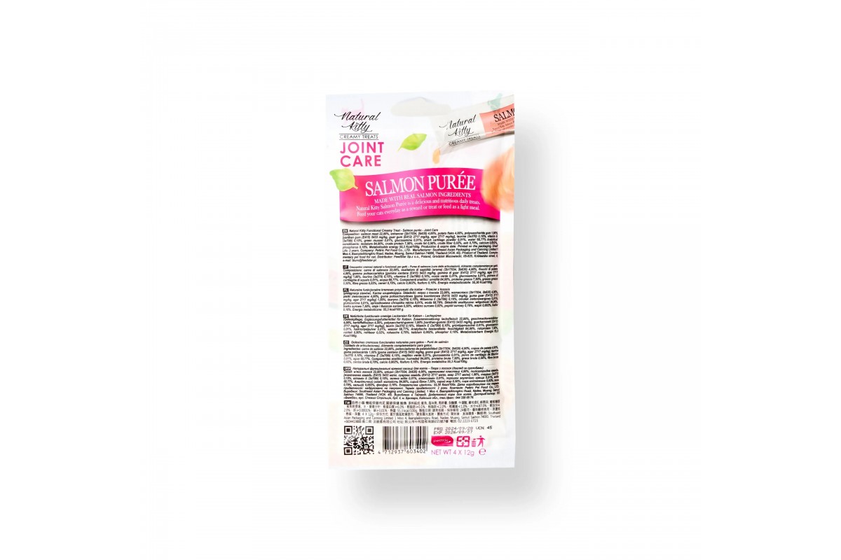 Крем-снек Natural Kitty Treat Salmon Puree, пюре з лосося, догляд за суглобами, 4х12 г