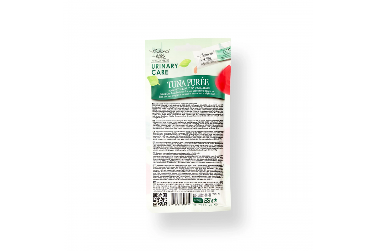Крем-снек Natural Kitty Treat Tuna Puree, пюре з тунця, догляд за сечовивідними шляхами, 4х12 г