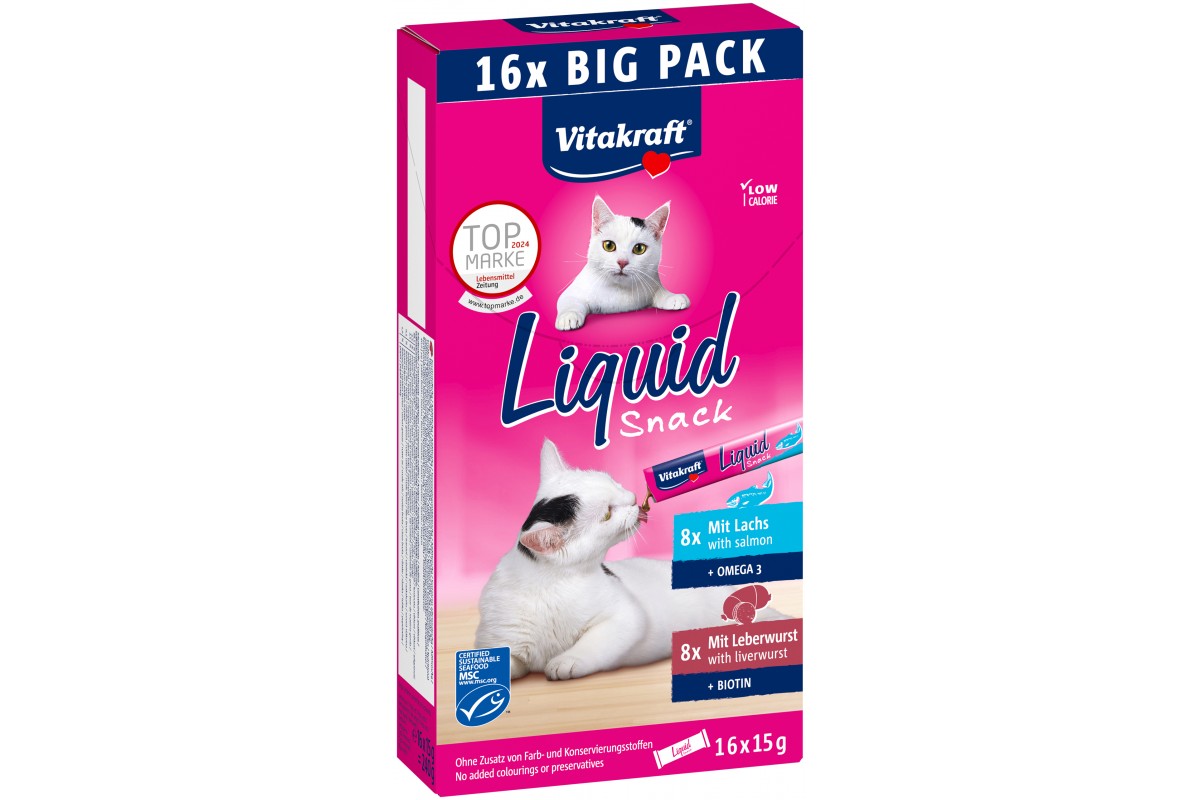 Крем-снек Vitakraft Cat Liquid Snack Multipack, з лососем/ліверною ковбасою (2 смаки), 16*15 гр