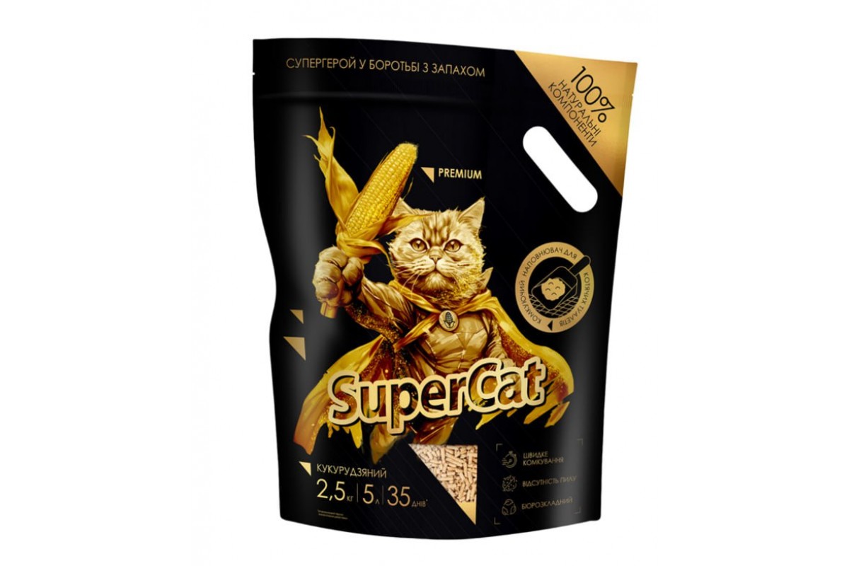 Кукурудзяний наповнювач SuperCat ПРЕМІУМ, комкуючий, для котячих туалетів,2,5 кг