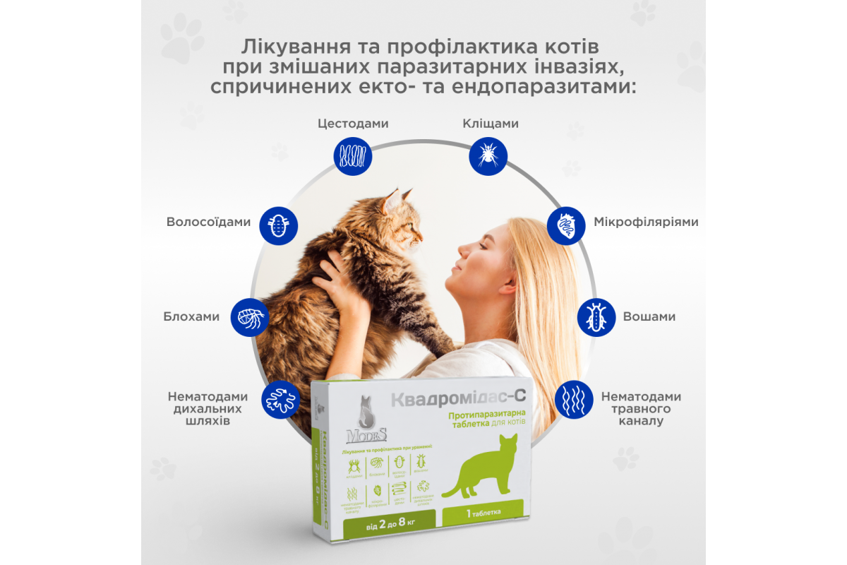 Квадромідас — C протипаразитарні таблетки для котів 0,5-2 кг, 0,2 г, MODES