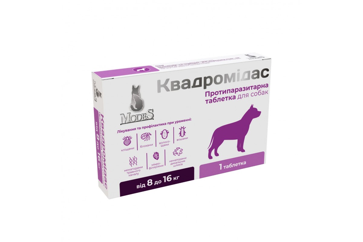 Квадромідас протипаразитарні таблетки для собак 8-16 кг, 0,8 г, MODES