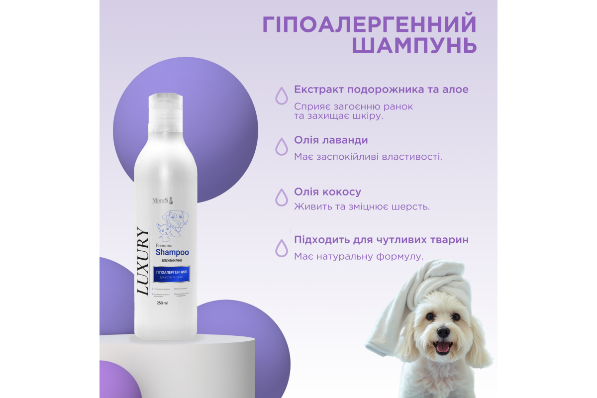 Лакшері (Luxury) преміальний шампунь гіпоалергенний для котів та собак 250 мл, MODES