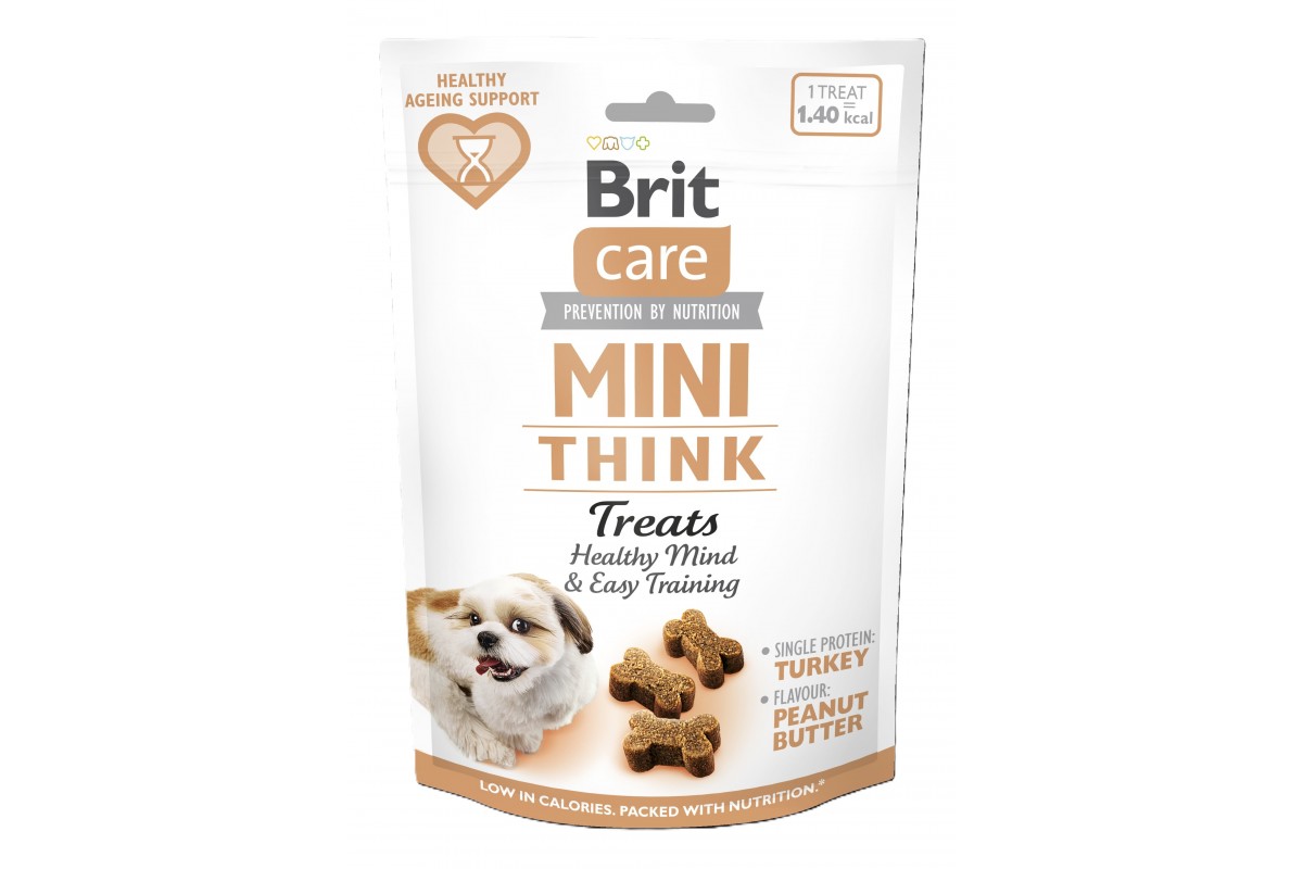 Brit Care Mini Treats Think – напіввологі функціональні ласощі для підтримки оптимальних розумових здібностей та дресирування. Додатковий корм для дорослих собак дрібних порід.