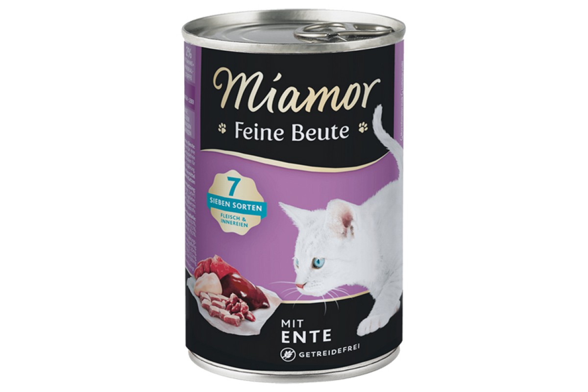 Miamor Feine Beute mit Ente – це 7 видів м’яса та субпродуктів: 7 смаків для 7 життів вашого кота! Цей вологий корм створений з урахуванням природних потреб котів, адже в дикій природі вони харчуються виключно м’ясом. Тому в складі немає пшениці, кукурудзи, сої та інших наповнювачів – тільки цінні м’ясні інгредієнти, які потрібні для енергії, сили та здоров’я вашого улюбленця.