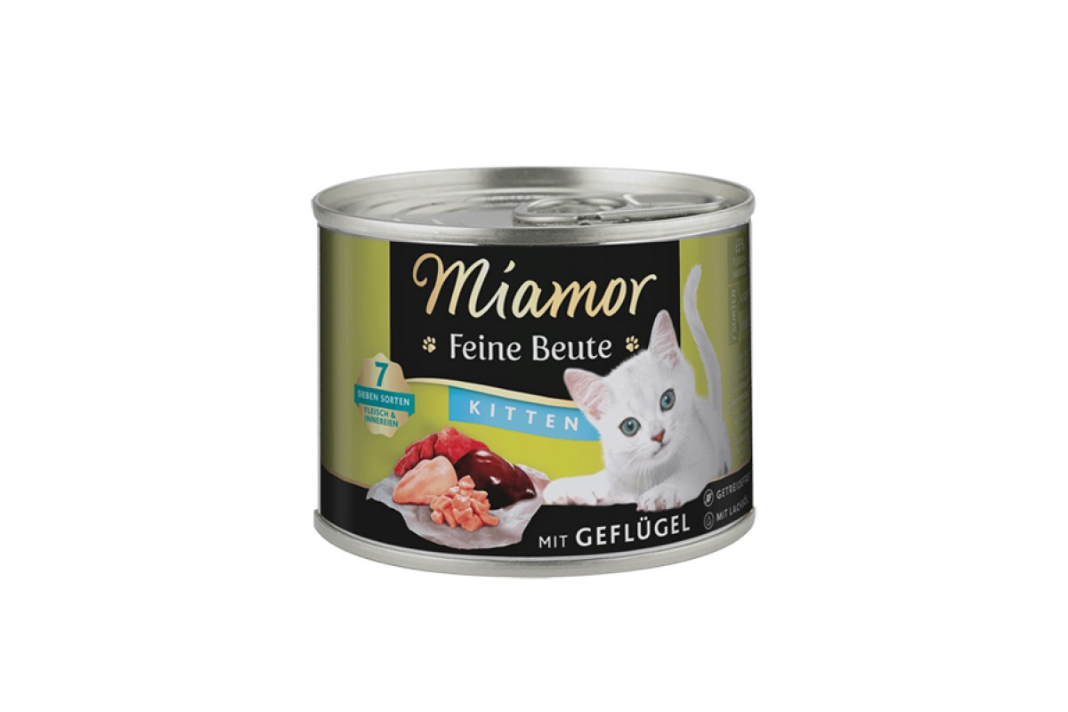Miamor Feine Beute mit Geflügel – це 7 смаків для 7 життів вашого кота! З самого початку кошенята потребують м’ясного раціону, максимально наближеного до природного. Тому в складі немає пшениці, кукурудзи, сої, штучних барвників і консервантів – тільки чисте м’ясо та субпродукти, збагачені таурином, який вкрай важливий для здоров’я серця, зору та загального розвитку маленького хижака.