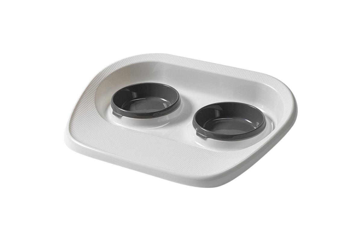 Мрієте про годування улюбленця без хаосу на кухні? Moderna Tidy Diner створений саме для цього. Цей стильний столик із двома мисками по 300 мл допомагає зберегти чистоту та порядок, перетворюючи щоденне годування собак і котів на зручний і приємний ритуал. Розлита вода та крихти більше не зіпсують підлогу – усе акуратно збирається в тацю з підвищеним бортиком. Завдяки протиковзким ніжкам столик стоїть міцно й не ковзає, а миски фіксуються простим кліком, залишаючись стійкими навіть для найактивніших улюбленців.