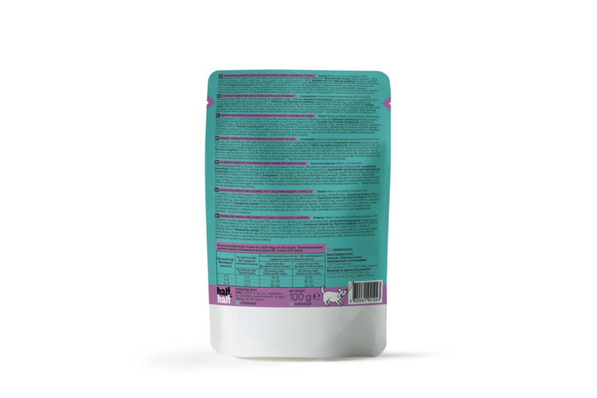 Набір вологих кормів Half&Half "5+1" для дорослих собак, шматочки з качкою в соусі, паучі, 6 шт*100