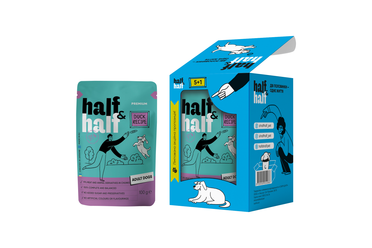 Half&Half говорить мовою дружби, тож набір із шести паучів для песиків стане смачним способом сказати своєму хвостику: «Ти мій найкращий друг!».