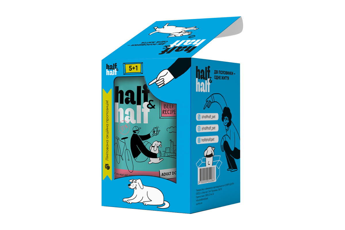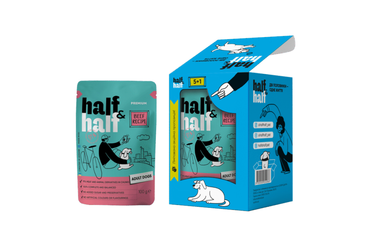 Half&Half говорить мовою дружби, тож набір із шести паучів для песиків стане смачним способом сказати своєму хвостику: «Ти мій найкращий друг!».