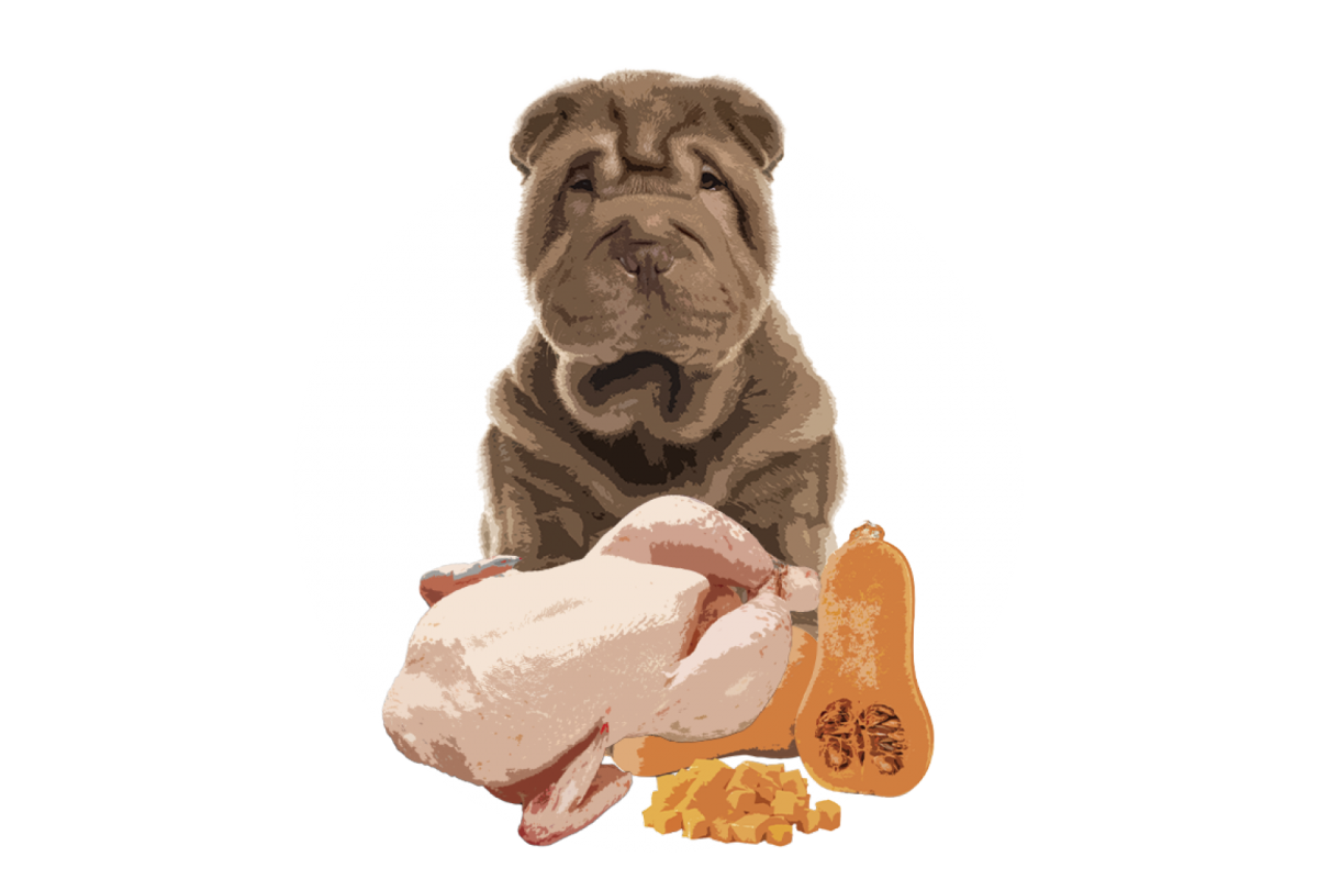 85% свіжого м’яса (включаючи, м’язове м'ясо, серце та печінку) + суперфуд гарбуз + Орігоформула
