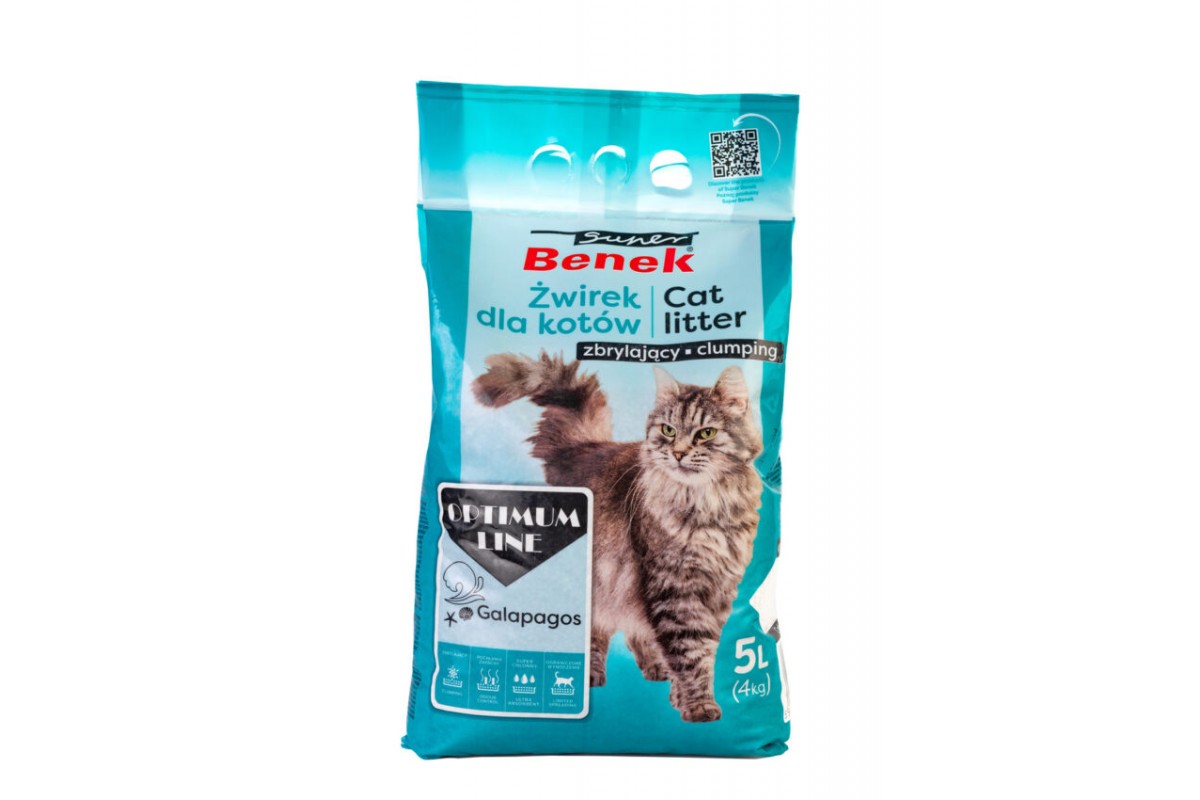 Super Benek Optimum Galapagos - високоякісний наповнювач, що комкується, виготовлений з натурального білого мінералу бентоніту, який допомагає наповнювачу завжди виглядати ідеально чистим. Бентоніт - природний глинистий мінерал, який має високопористу структуру, завдяки якій швидко вбирає рідину та вологу з навколишнього середовища та утворює грудки. Сильне та швидке злипання в грудки запобігає попаданню сечі або фекалій на лапи вашого вихованця, а також перешкоджає розсипанню наповнювача навколо лотка, що значно полегшує прибирання та забезпечує гігієну в будинку.