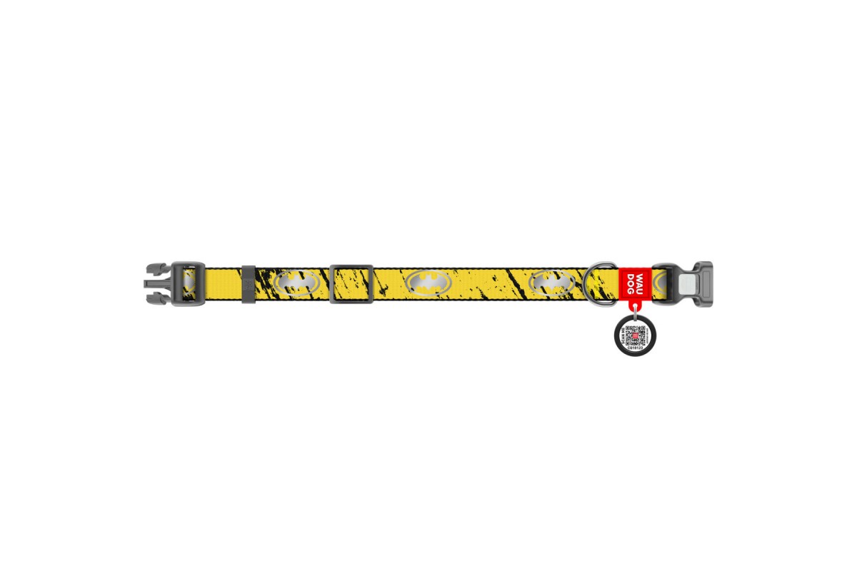 Нашийник для собак нейлоновий WAUDOG Nylon з QR світловідбивний, "Бетмен Ескіз" L, Ш 25мм Д 33-49см