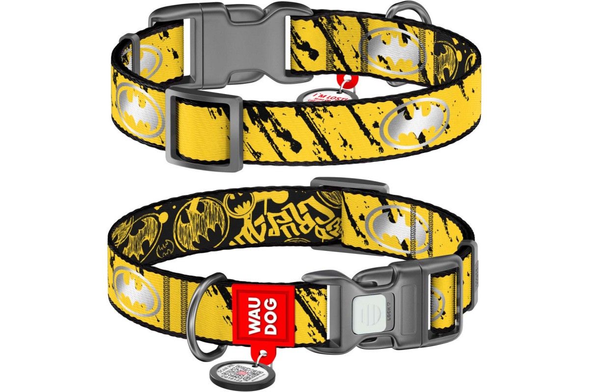Нашийник для собак нейлоновий WAUDOG Nylon з QR світловідбивний, "Бетмен Ескіз" XL, Ш 25мм Д 37-58см