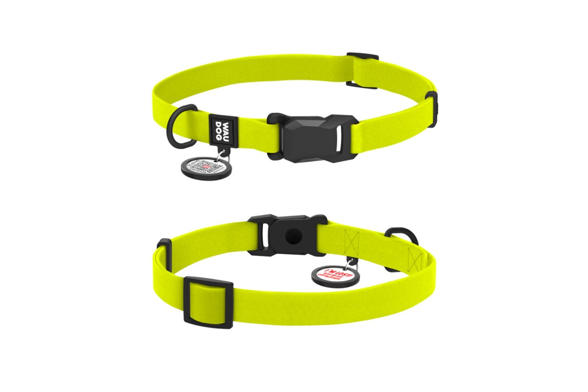 Нашийник для собак водостійкий WAUDOG Magnet c QR , магнітна пряжка S, Ш15мм, Дов 26-35 см лимонний