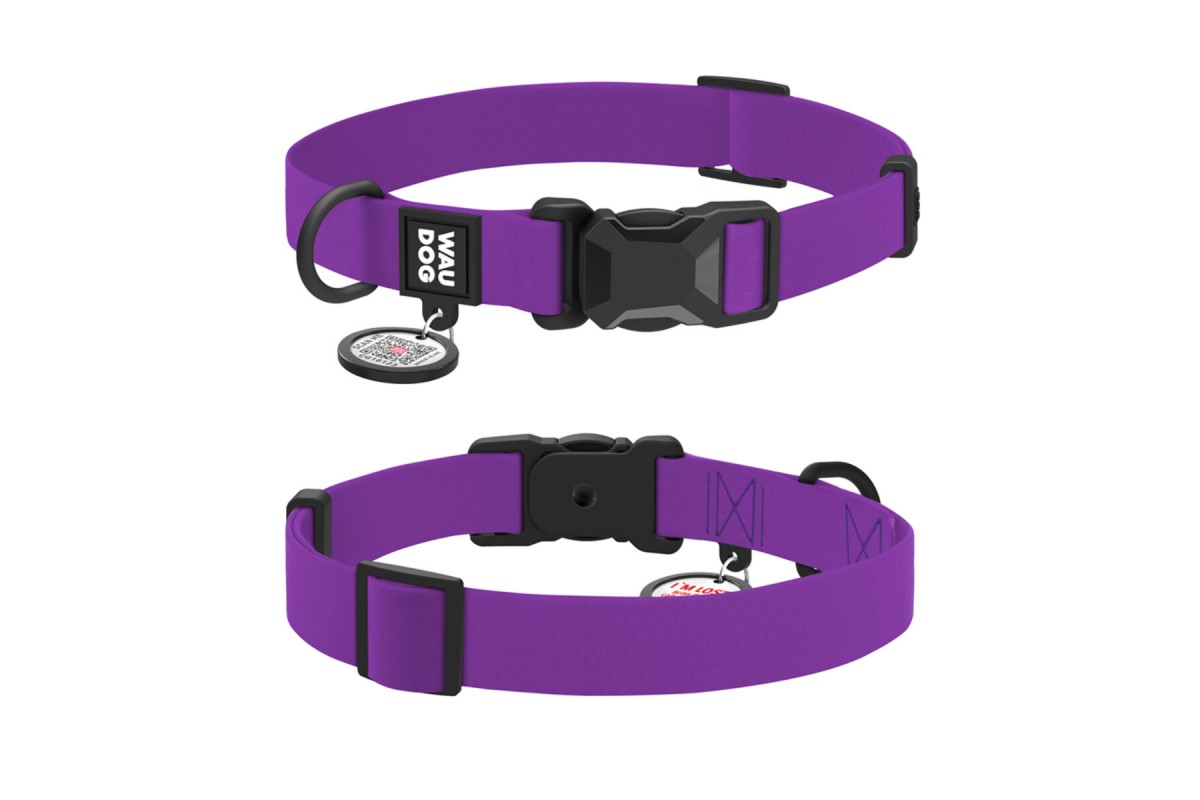 Нашийник для собак водостійкий WAUDOG Magnetc c QR магнітна пряжка S Ш15мм Дов 26-35 см фіолетовий