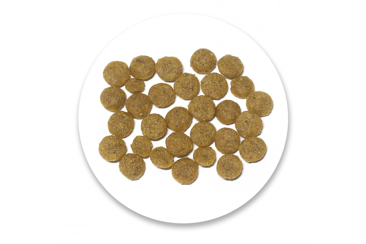 Аналітичний склад / 1кг: сирий білок - 24%, необроблені масла та жири - 13%, сира зола - 7%, сира клітковина - 2,5%, кальцій - 1,2%, фосфор - 1%, калій - 0,5 %, натрій – 0,4%, Омега-3 жирні кислоти – 0,35%, Омега-6 жирні кислоти – 2,65%.