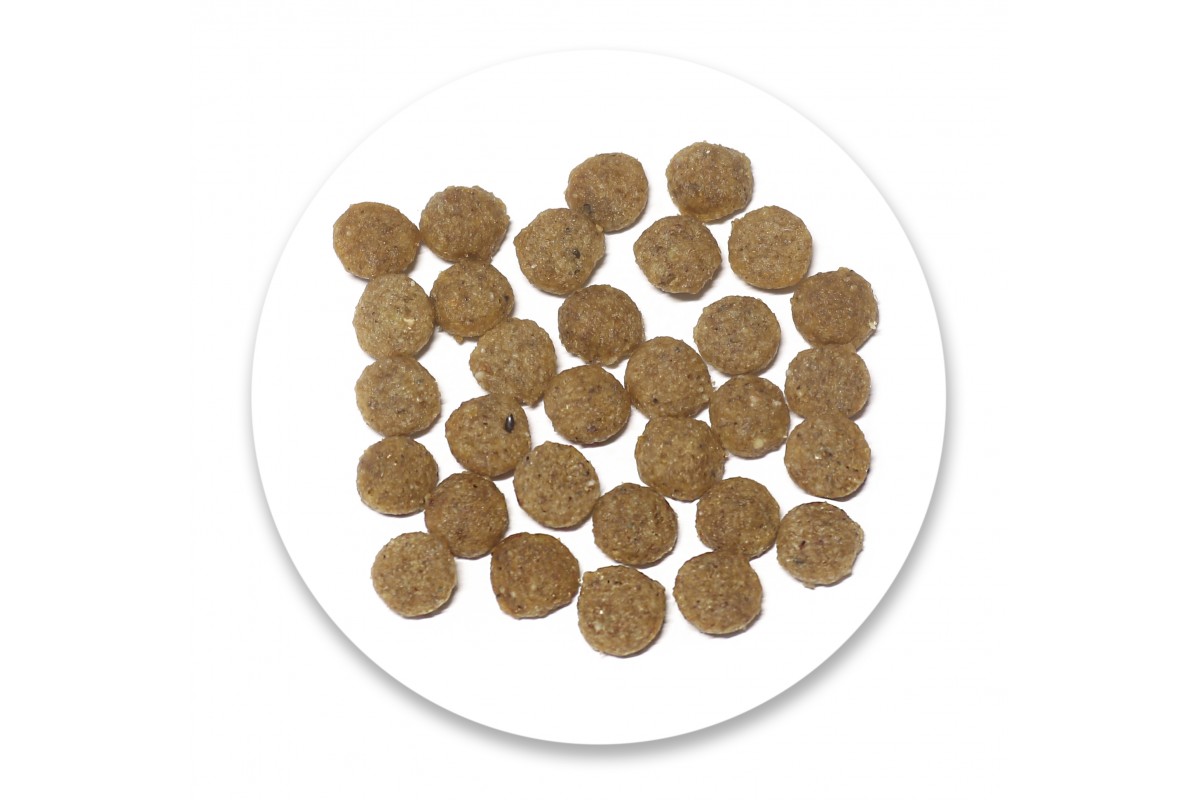 Склад: м'ясо птиці 37% (сушені та подрібнені), сорго, рис, кукурудза, кукурудзяний глютен, жир птиці, жом цукрових буряків, горох, динамічно мікронізований кліноптилоліт (1%), рибне борошно, насіння льону, яєчний порошок, ман (МОС), екстракт юкки, глюкозамін (500 мг/кг), борошно з чорнобривців, хондроїтин сульфат (200 мг/кг).