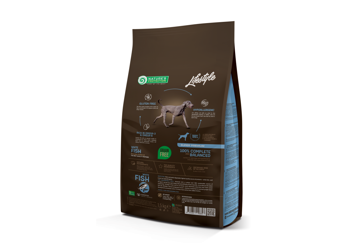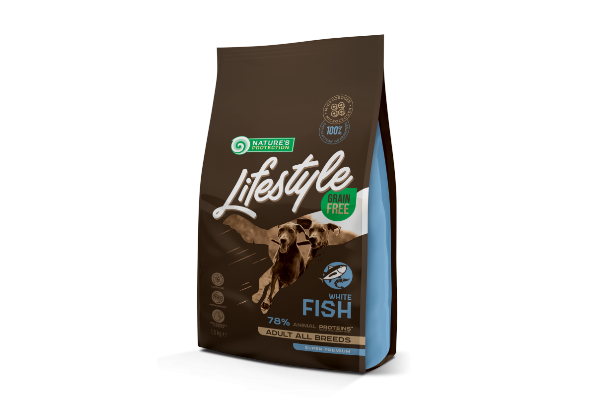 Сухий корм Nature's Protection Lifestyle Grain Free White Fish Adult для собак, з білою рибою, 1.5 кг