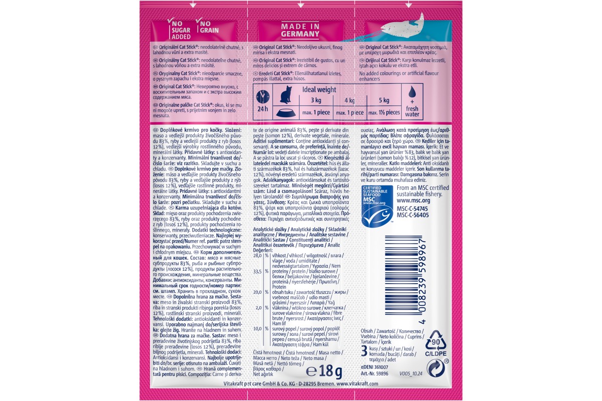 М'ясні палички Vitakraft Cat Stick Salmon MSC, для котів, з лососем, 3*6 гр