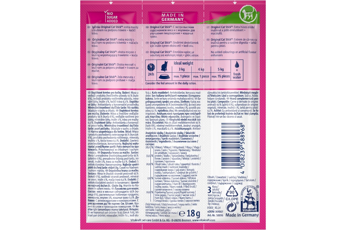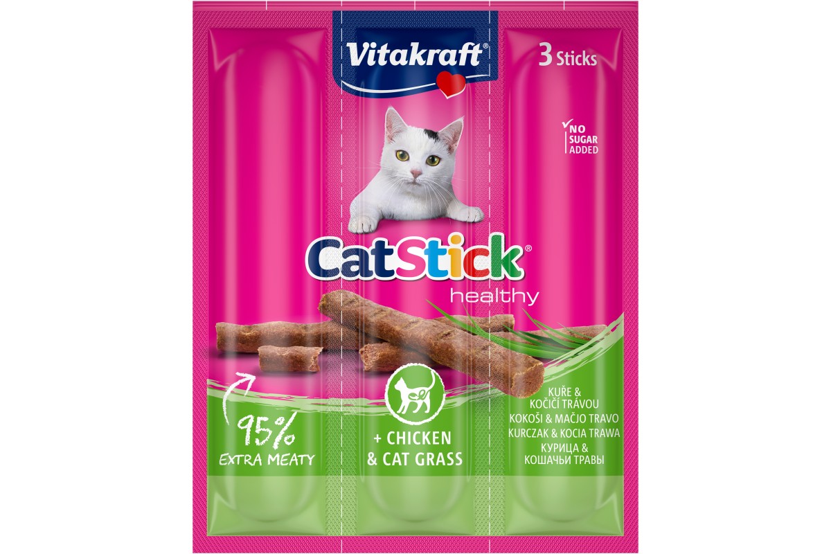 М'ясні палички Vitakraft Cat Stick Chicken & Cat grass, для котів, з куркою та котячою травою, 3*6 гр