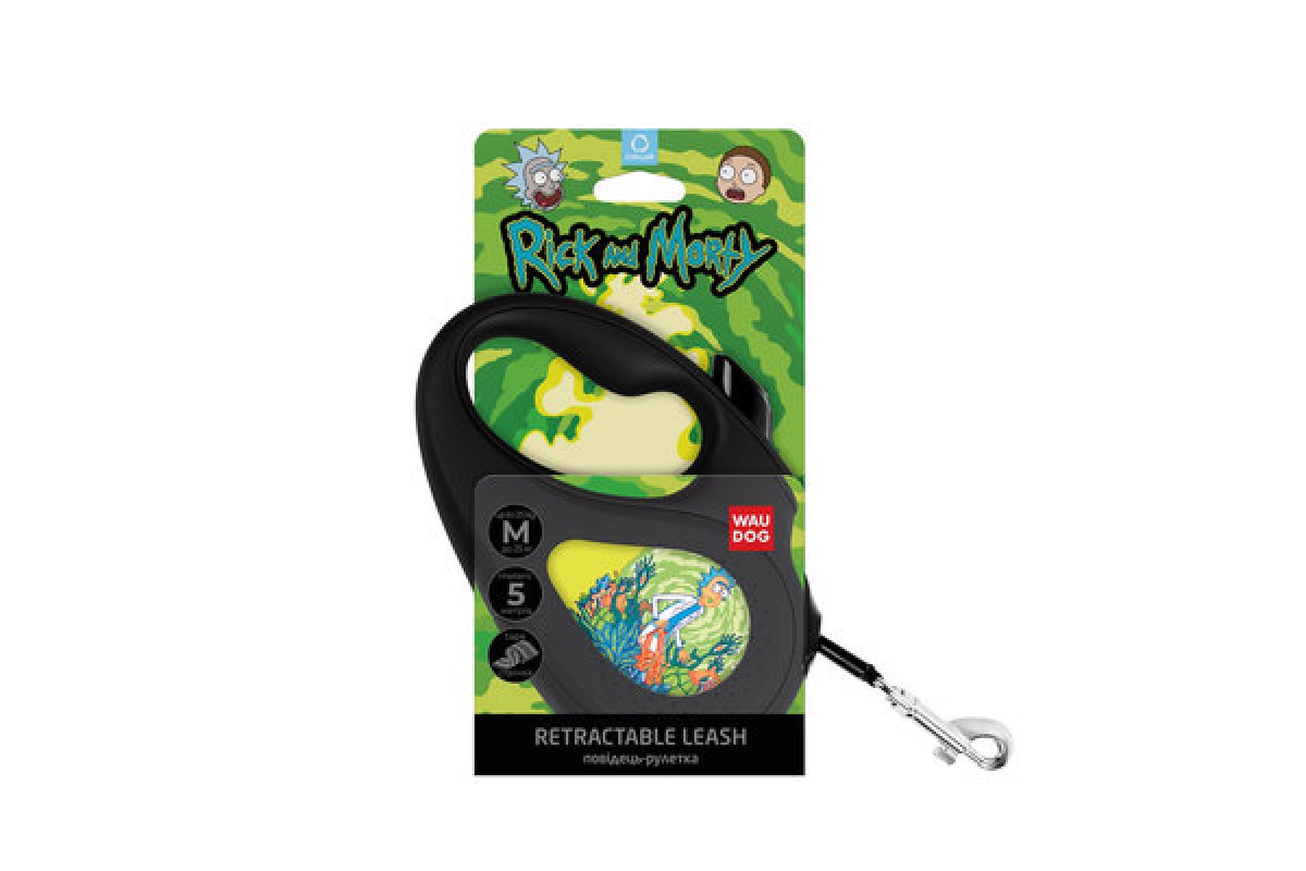 Повідець-рулетка для собак WAUDOG R-leash "Рік та Морті 2" M до 25кг 5м світловідбивна стрічка чорн