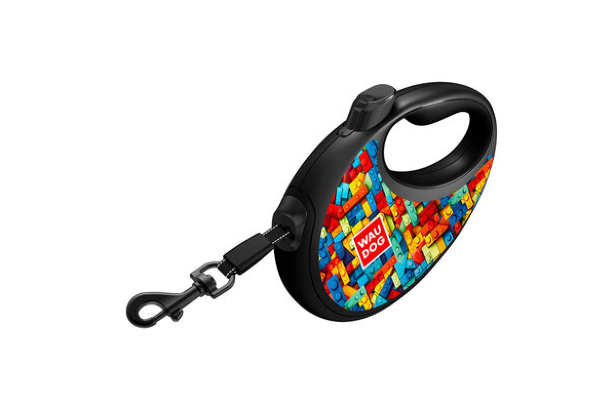 Повідець-рулетка для собак WAUDOG R-leash з контейнером "Блоки" світловідбивна стрічка M до 20кг 5м