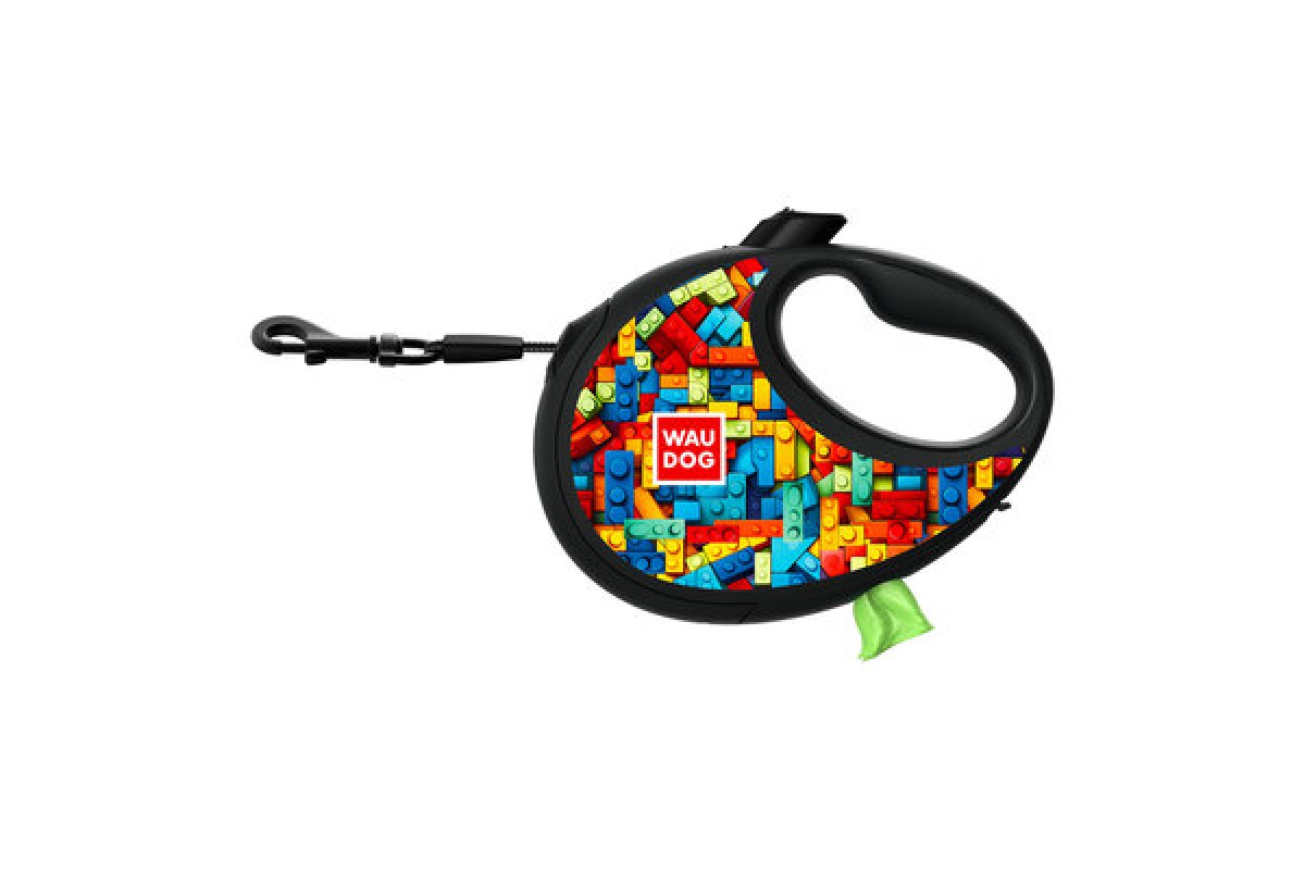 Повідець-рулетка для собак WAUDOG R-leash з контейнером "Блоки" світловідбивна стрічка S до 12кг 3м