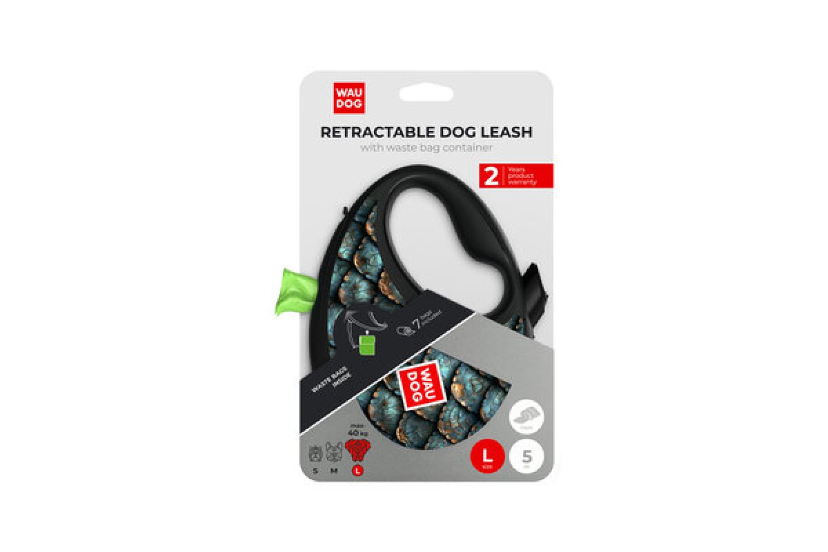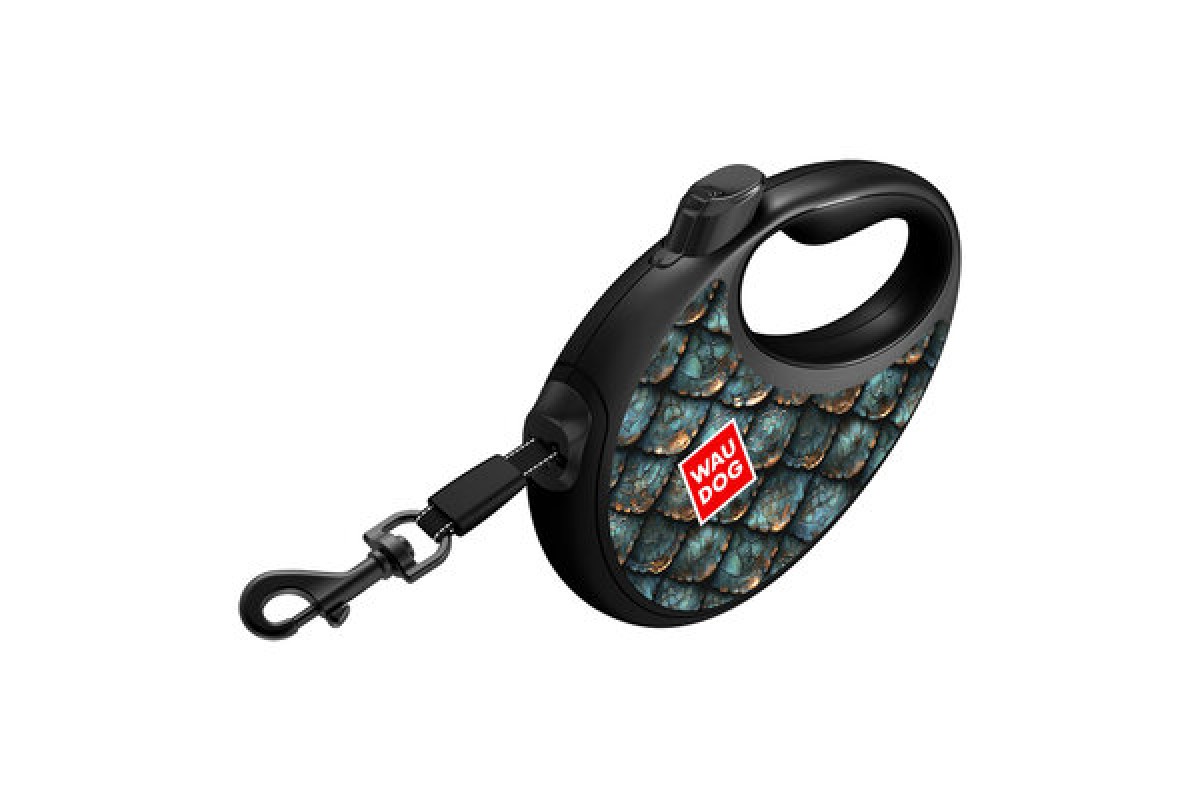 Повідець-рулетка для собак WAUDOG R-leash з контейнером "Луска" світловідбивна стрічка L до 40кг 5м