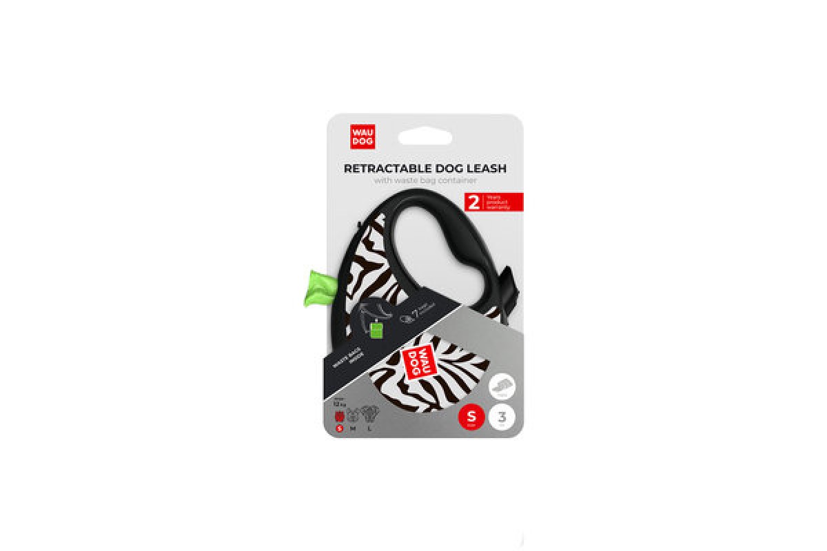 Повідець-рулетка для собак WAUDOG R-leash з контейнером "Зебра" світловідбивна стрічка S до 12кг 3м