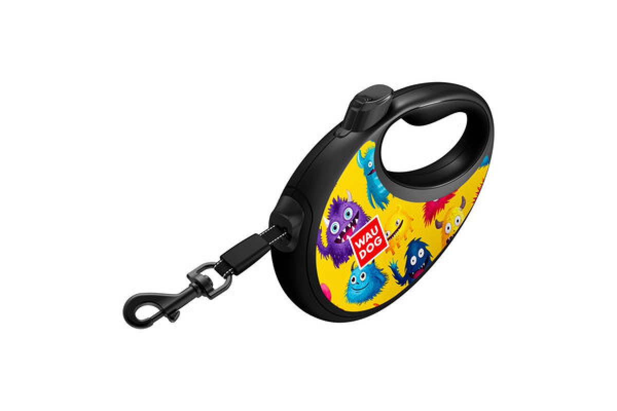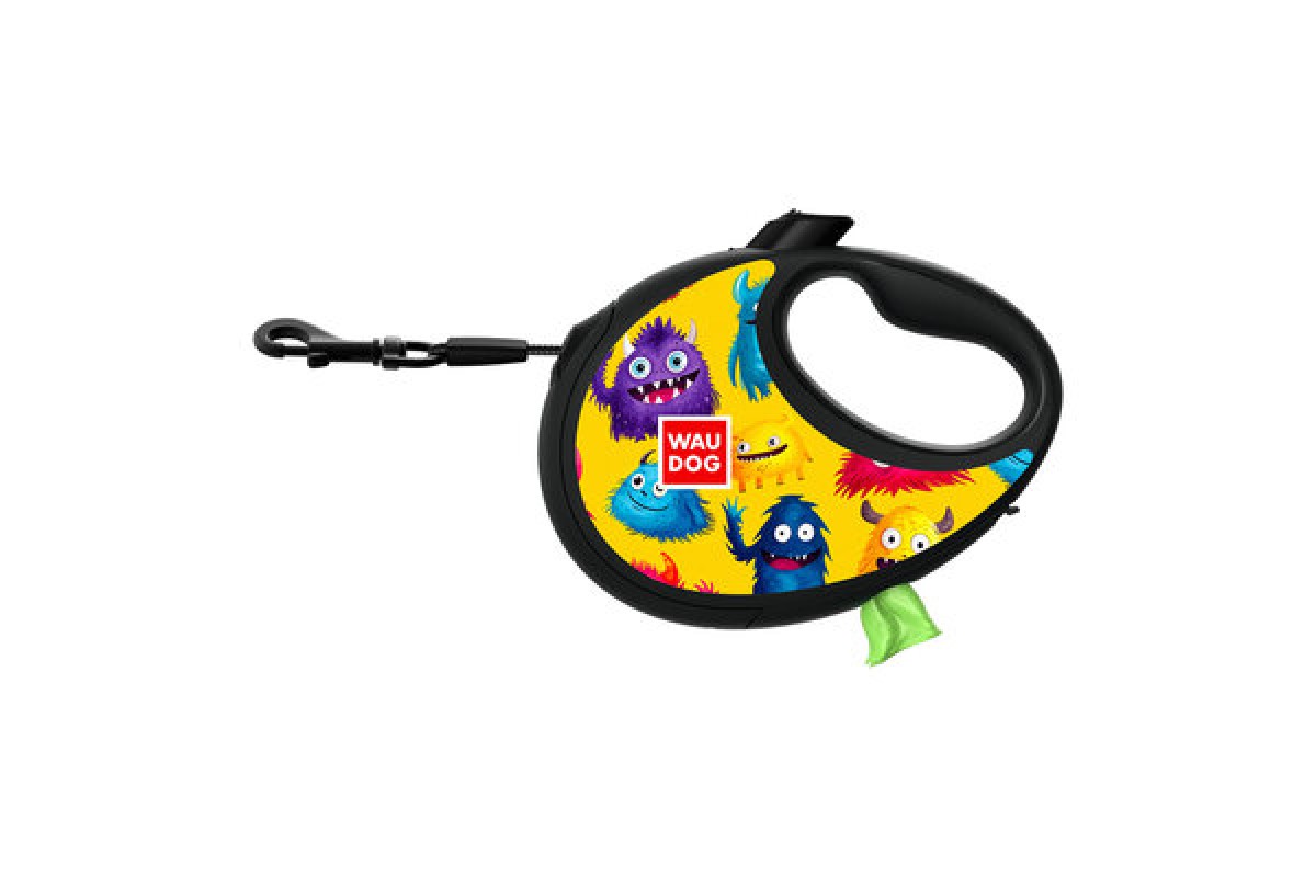 Повідець-рулетка WAUDOG R-leash з контейнером "Мохнаті монстри" світловідбивна стрічка M до 20кг 5м