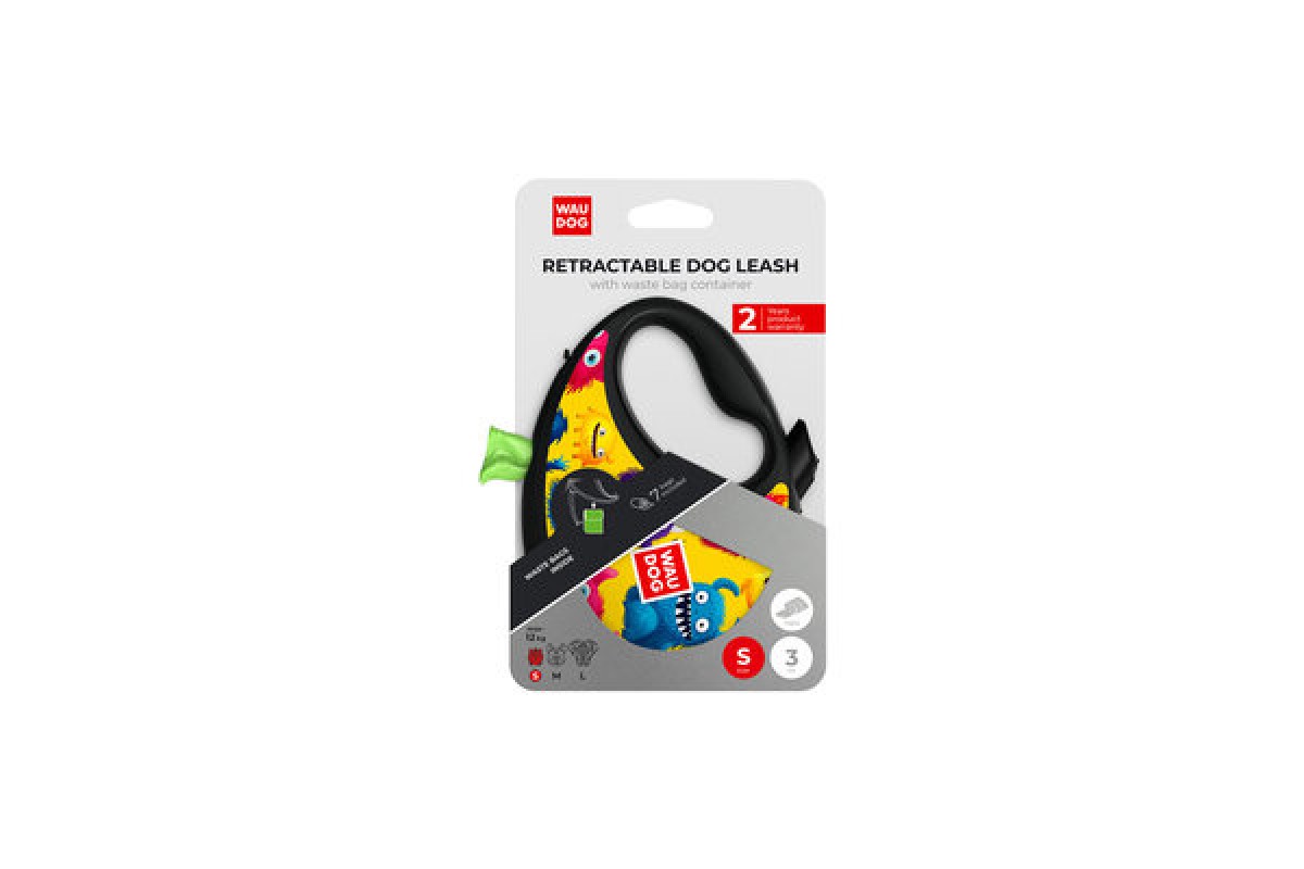 Повідець-рулетка WAUDOG R-leash з контейнером "Мохнаті монстри" світловідбивна стрічка S до 12кг 3м