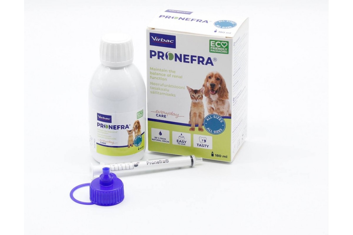 Ветеринарний лікарський засіб, суспензія Пронефра має системний вплив на організм собаки чи кота. Препарат завдяки продуманому складу, наявності жирних кислот, білка, полісахаридів та інших компонентів, він впливає як на роботу нирок (особливо при хронічній нирковій недостатності), так і на загальний стан. Суспензія комплексно впливає на стан здоров'я вихованця – сприяє метаболізму, знижує рівень фосфатів у крові, збільшує якість та термін життя.